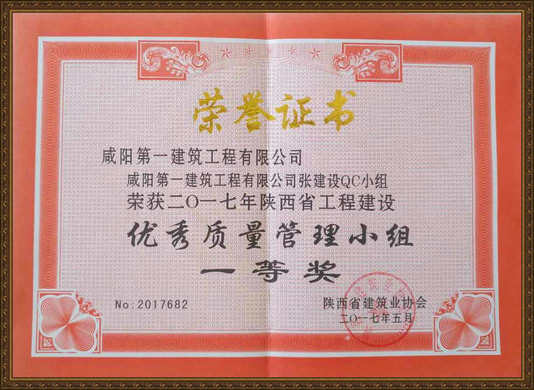 2017年度陜西省QC一等獎