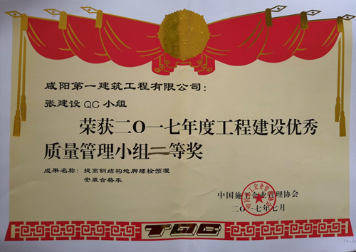 2017年度國家工程建設(shè)質(zhì)量管理小組二等獎